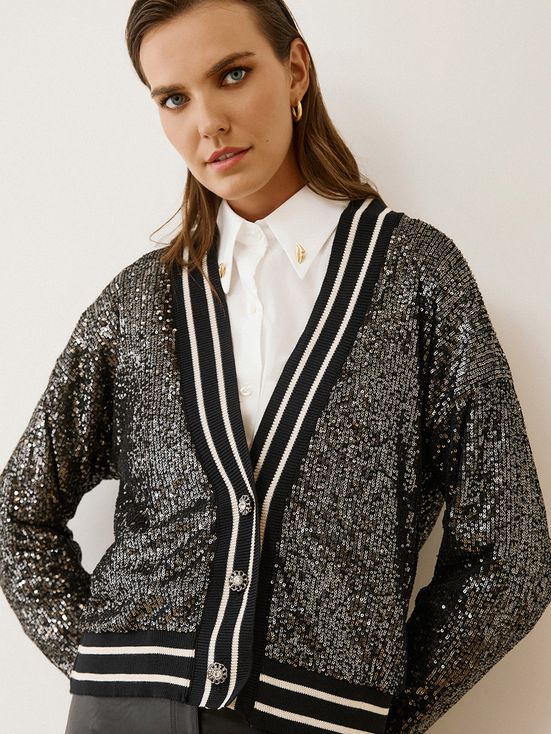 Λεπτομέρειες προϊόντος icons Email 79,00 € Σε απόθεμα SKU: 252360 94% Pes, 6% sp Χρώμα ΤΥΠΟΣ Please select a variant above. Μέγεθος SmallLarge Please select a variant above. fa-angle-up fa-angle-down ask a question Ρωτήστε μας Προσθήκη σε αγαπημένα Πίσω στο: Πανοφώρια Περιγραφή Ζακέτα Figaro στολισμένη με παγέτες και τρέσα λάστιχο στο τελείωμα και στα μανίκια
